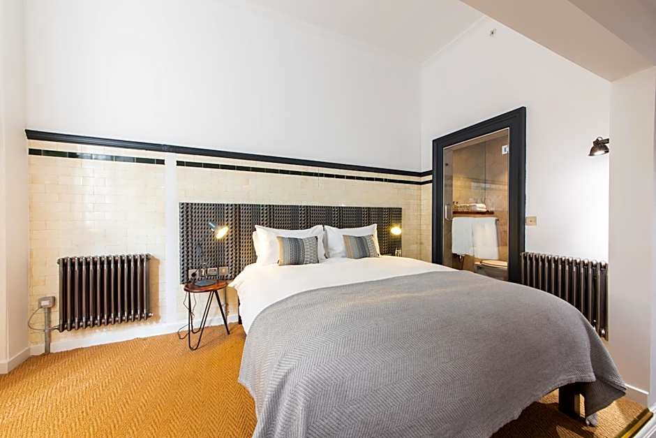 This third-floor apartment is our small studio. It's compact layout with king-sized bed and dining area is ideal for a couple. There is a kitchenette for preparing meals with a hob and fridge. It combines modern decor while incorporating some of the buildings original design with a unique toilet. The studio has a flat-screen TV, and kitchenette facilities including a microwave and fridge.