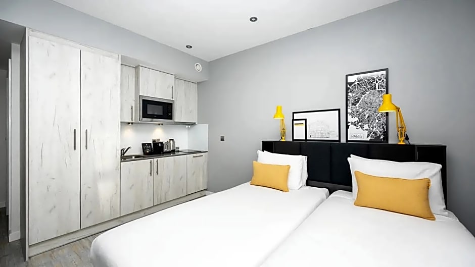Staycity Aparthotels Liverpool Waterfront offers a variety of room types including Two-Bedroom Apartments, Studios, and One-Bedroom Apartments. All rooms are non-smoking. The Two-Bedroom Apartments can accommodate 6 adults and 4 children, with bed options including a sofa bed and queen size beds. The Studios and One-Bedroom Apartments can accommodate 2-3 adults and 1-3 children, with bed options ranging from queen size beds to sofa beds. The hotel also provides an accessible Studio that can accommodate 3 adults and 2 children.