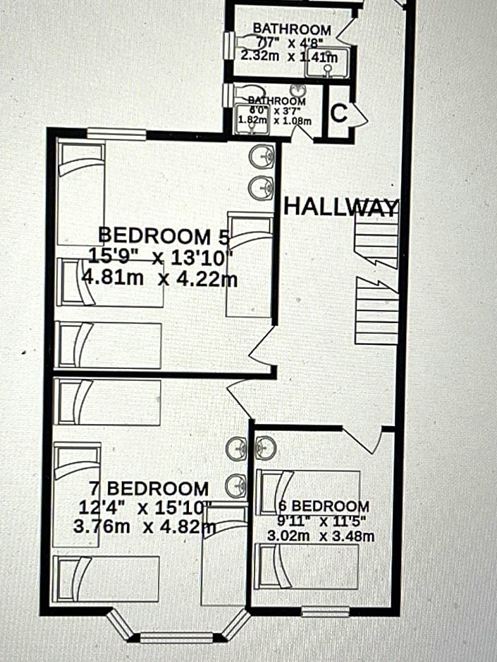 The dormitory room offers a tea and coffee maker and a carpeted floor, as well as a shared bathroom featuring a shower. The dormitory room features heating. The unit offers 8 beds.