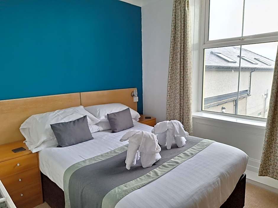 Swn Y Mor hotel offers several types of rooms. They have Double Rooms with Private Bathrooms, Superior Double Rooms, Twin Rooms with Showers, and an Apartment with a Shower. All rooms are non-smoking and can accommodate 2 adults. The bed sizes vary, with options including double beds, twin beds, and king size beds. Room sizes range from 151 sqft to 194 sqft.