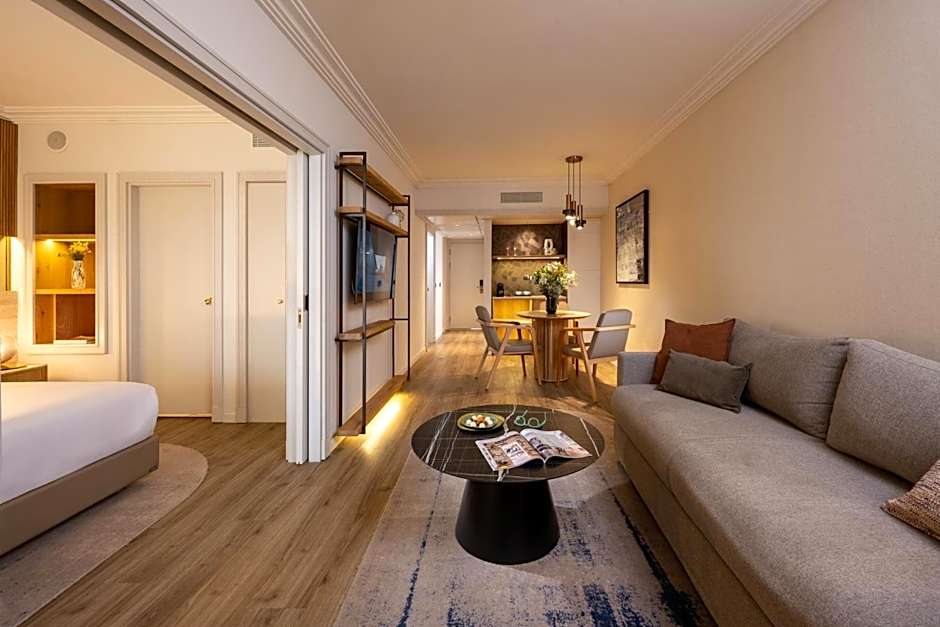 The hotel offers three types of rooms: Double SweetRoom, Twin Sweet Room, and Family Room. The Double SweetRoom and Twin Sweet Room are both 183 sqft and do not allow smoking. The Double SweetRoom accommodates 2 adults and 1 child with a king-size bed, while the Twin Sweet Room accommodates 2 adults with 2 twin beds. The Family Room also has a room size of 183 sqft and does not allow smoking. It accommodates 2 adults and 1 child with a king-size bed and a sofa bed.