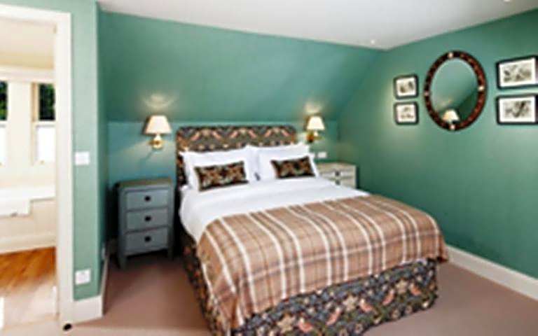 This more spacious room with a super king-size four-poster bed is set in the main house and features a coal effect gas fire and walk-in wardrobe. The private bathroom has a double bath, separate shower and a double sink.