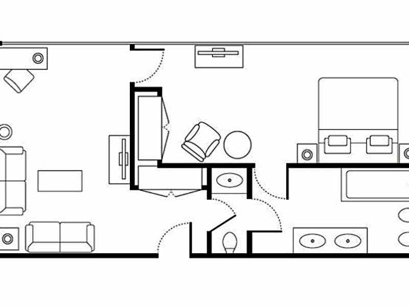 Cabin Suite is 700 square feet and includes a king-size bed 150-183 width plus hairdryer, tea and coffee making facilities , ironing set, safe, and bathrobes.