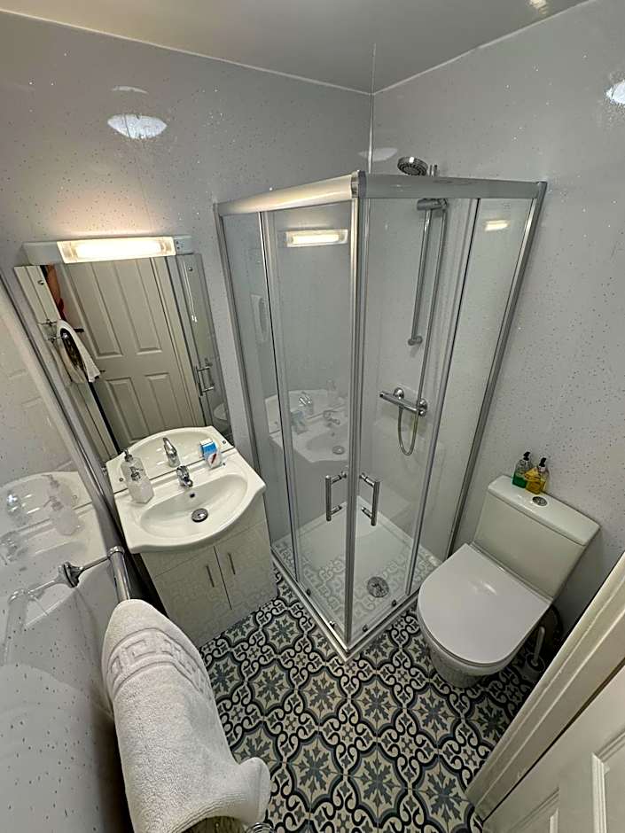 This twin room with attached bathroom on the ground floor is at the back of the property. This room can accommodate dogs.