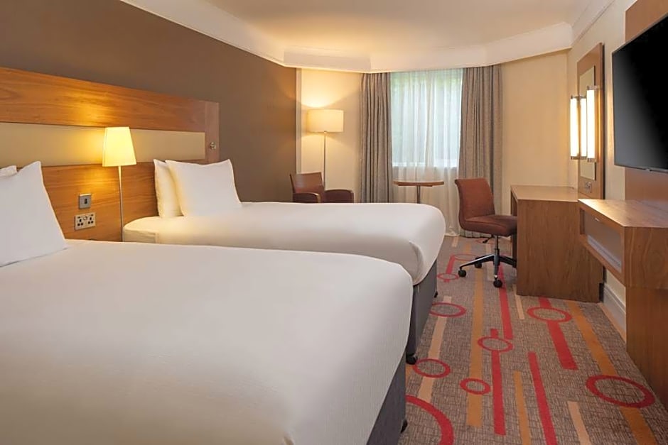 The DoubleTree by Hilton Newbury North offers various types of rooms. These include Queen Guest Rooms and Twin Hilton Guest Rooms, both of which can accommodate 2 adults and 1 child. There are also Queen Family Guest Rooms and Deluxe Twin Family Rooms, which can accommodate larger groups with 3 adults and 2 children, and 4 adults and 3 children, respectively. In addition, there are Deluxe Queen Rooms and Deluxe Twin Rooms available, both of which can accommodate 2 adults and 1 child. All rooms have a size of 215 sqft and smoking is not allowed.