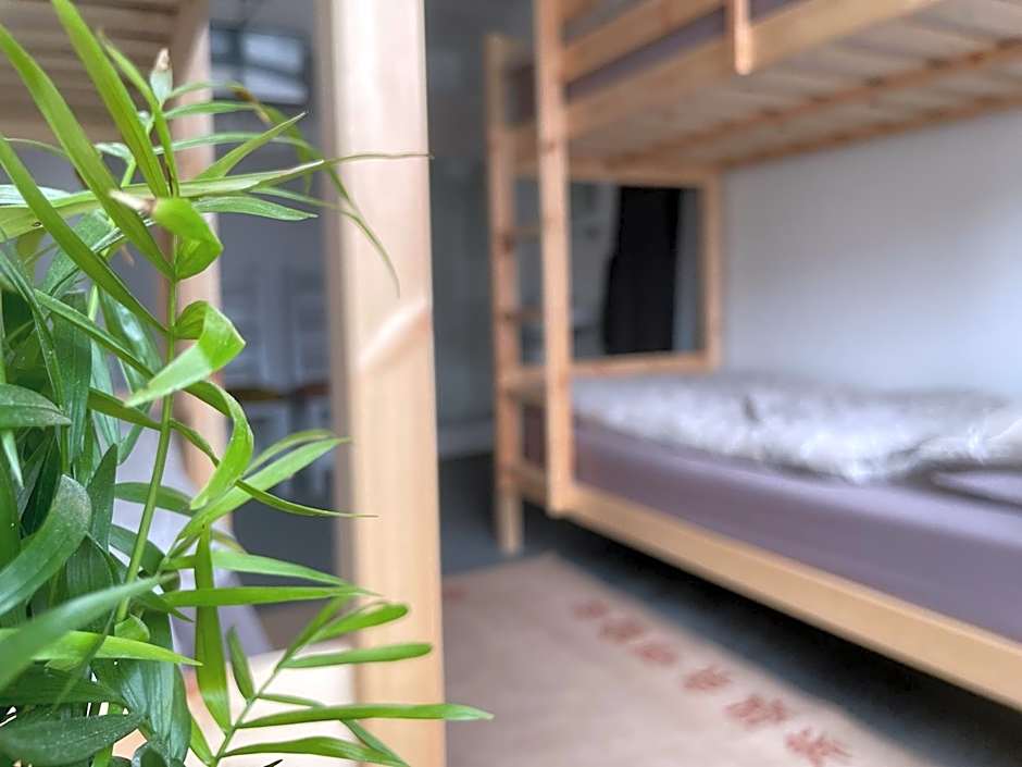 This room has 2 sets of bunks to sleep 4 guests with a sink in room and a shared bathroom.