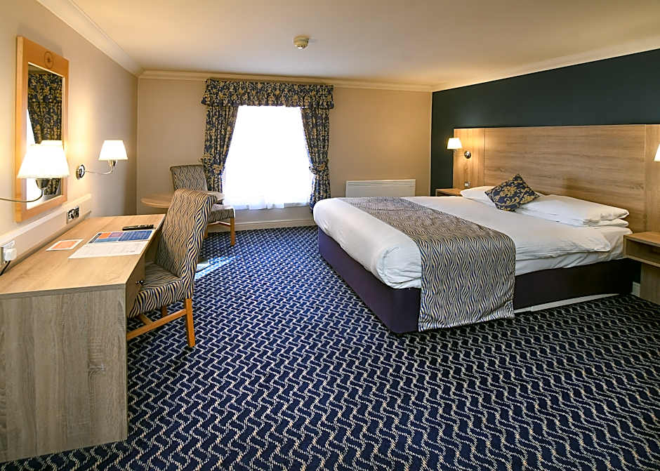 This double room has a king-size bed, a bathroom with shower over the bath, free-view flat-screen TV, and tea and coffee making amenities. Toiletries are complimentary. This is a smoking room.
