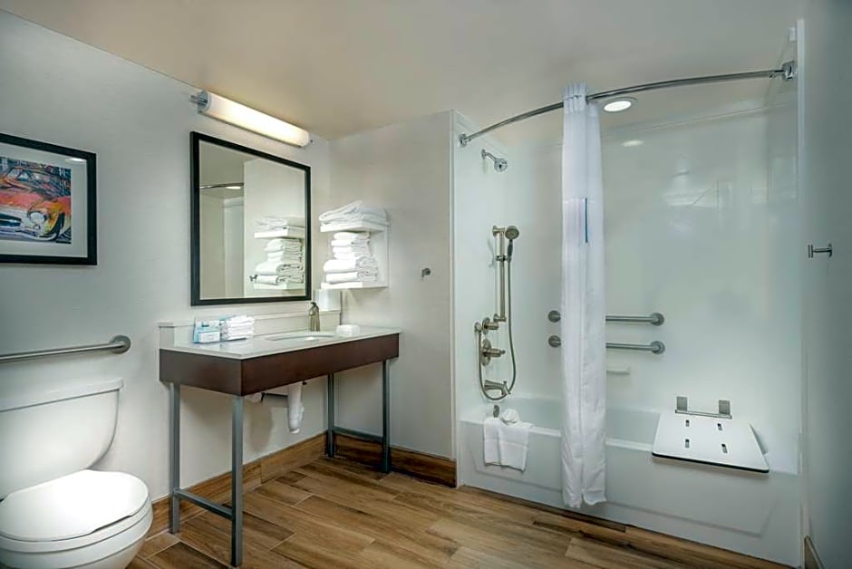 Free WiFi, free hot breakfast, bathroom is wheelchair accessible, bathtub/shower combination, bathtub grab bars, adjustable hand-held shower wand, portable bathtub seat, raised toilet seat with grab bars, bedroom is wheelchair accessible, closet rods at wheelchair height, mini-refrigerator, microwave, air conditioning, hair dryer, HDTV, bathroom amenities, alarm clock, desk