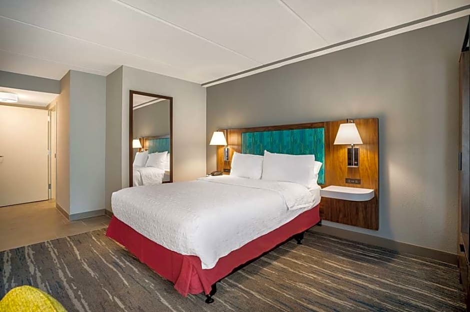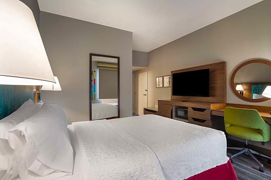 Mini-fridge, microwave, easy chair, desk, 32-inch TV, free WiFi Relax in this king room with a clean and fresh Hampton bed®. Sink into the easy chair with ottoman and watch movies on the 32-inch HDTV. Surf the web with free WiFi. Catch up with work at the large desk with ergonomic chair. Refresh your senses in the bathroom, complete with a shower and plush towels. Enjoy the convenience of having a mini-refrigerator, microwave and coffeemaker in the room.