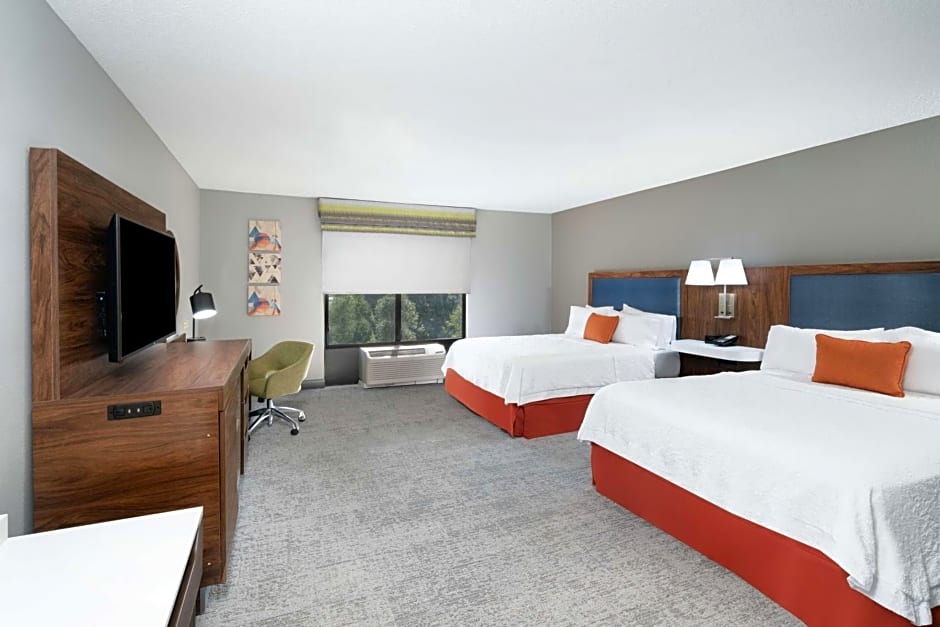 32-inch LCD TV, work desk, coffeemaker, free WiFi access Enjoy a restful stay in this comfortable room with a clean and fresh Hampton bed® and a 32-inch TV with HD channels. This room also features a large work desk, a coffeemaker and free WiFi access to allow you to stay connected when on the road. The bathroom contains plush towels and a shower featuring a curved shower rod for added space and light.