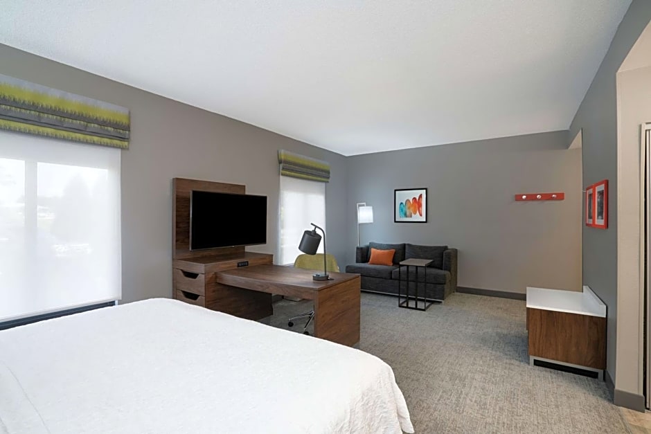 Sofa bed, 32-inch LCD TV, work desk, coffeemaker, free WiFi access Enjoy a restful stay in this comfortable room with a clean and fresh Hampton bed®, a sofa bed and a 32-inch TV with HD channels. This room also features a large work desk, a coffeemaker and free WiFi access to allow you to stay connected when on the road. The bathroom contains plush towels and a shower featuring a curved shower rod for added space and light.