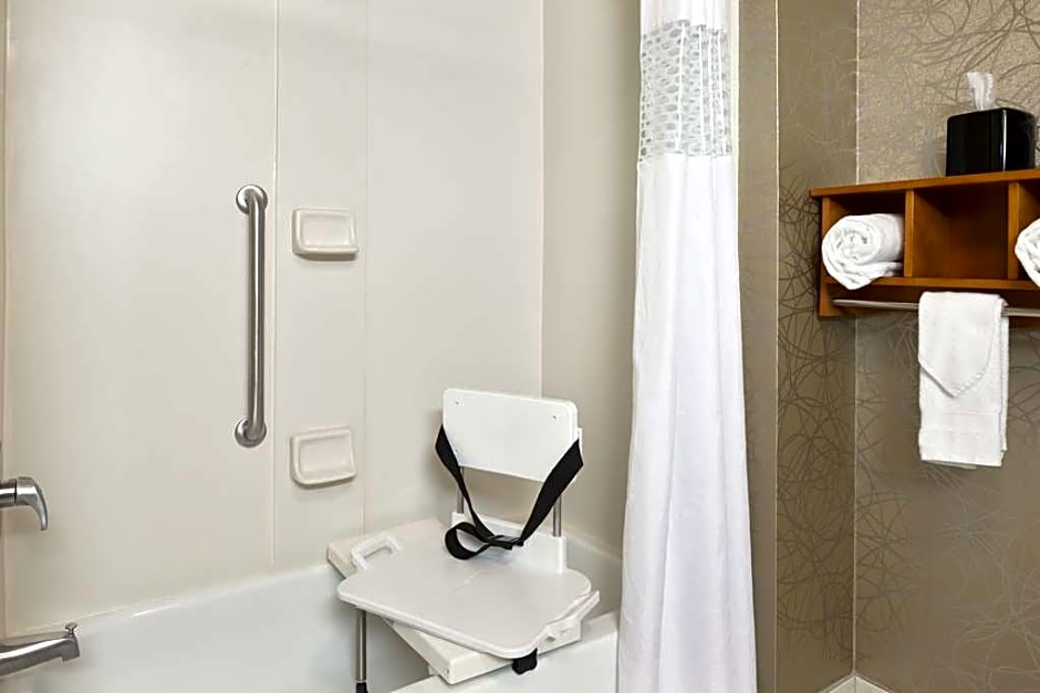 This mobility accessible, non-smoking room features one king-sized bed, and an accessible roll-in shower. The room features comfortable soft seating, microwave, refrigerator, a HDTV, and easy to operate alarm clock/radio. The free high-speed internet access will help you stay connected while on the road. If you prefer not to work at the desk, you can use the convenient lap-desk instead. You'll also enjoy the convenience of having a coffeemaker with tea service and iron/ironing board in your room. Any corresponding photo may not reflect the specific accessible room type or room feature.