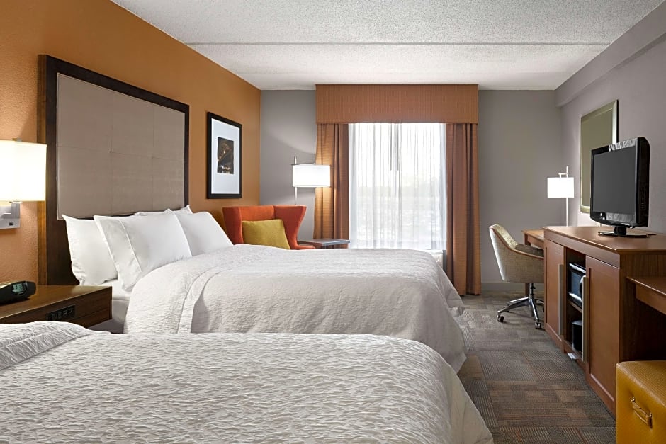 Free WiFi, 32-inch HDTV, work desk, coffeemaker, shower Enjoy your stay in Alabama in this non-smoking guest room which features 2 of our queen-sized clean and fresh Hampton beds®, and a 32-inch flat-screen TV. Catch up on work at the large desk, or surf the web with free WiFi access. Refresh in the bathroom which has a WaterPik showerhead and curved shower rod that allows more light and space in the shower.