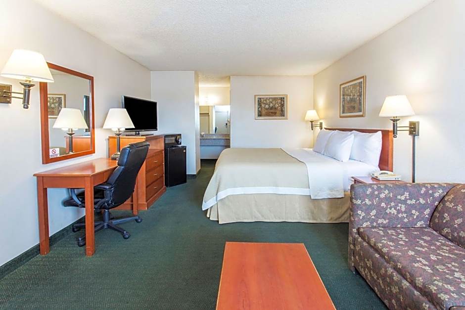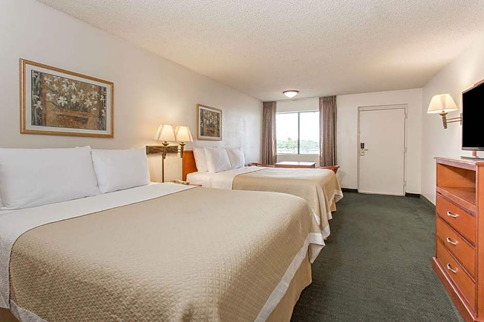 Room configurations offer solid flexibility. A King Room, Smoking Allowed spans 312 square feet with a king bed and can accommodate 2 adults and 1 child. A non-smoking King Room is also available, accommodating 4 adults and 4 children with a single king bed. Queen-based layouts include a Queen Room with two queen beds in a 312-square-foot space, plus a Smoking Allowed Queen Room. Additional options include Room - 2 Queen, Room - 2 Queen, Smoking Allowed, and Room Selected At Check In, each with its own setup.