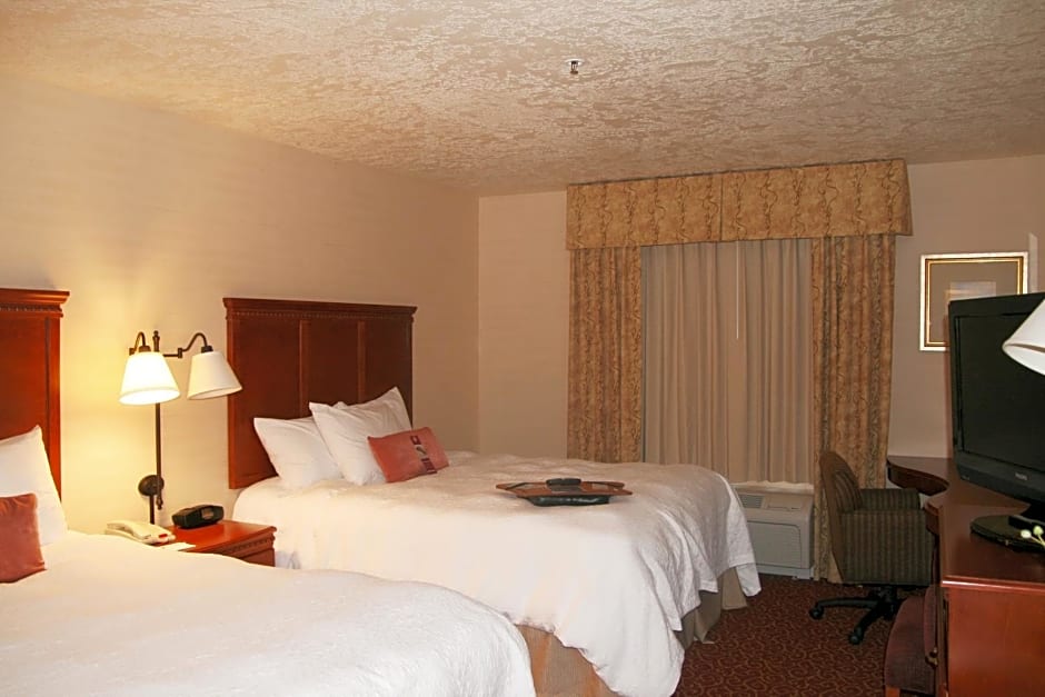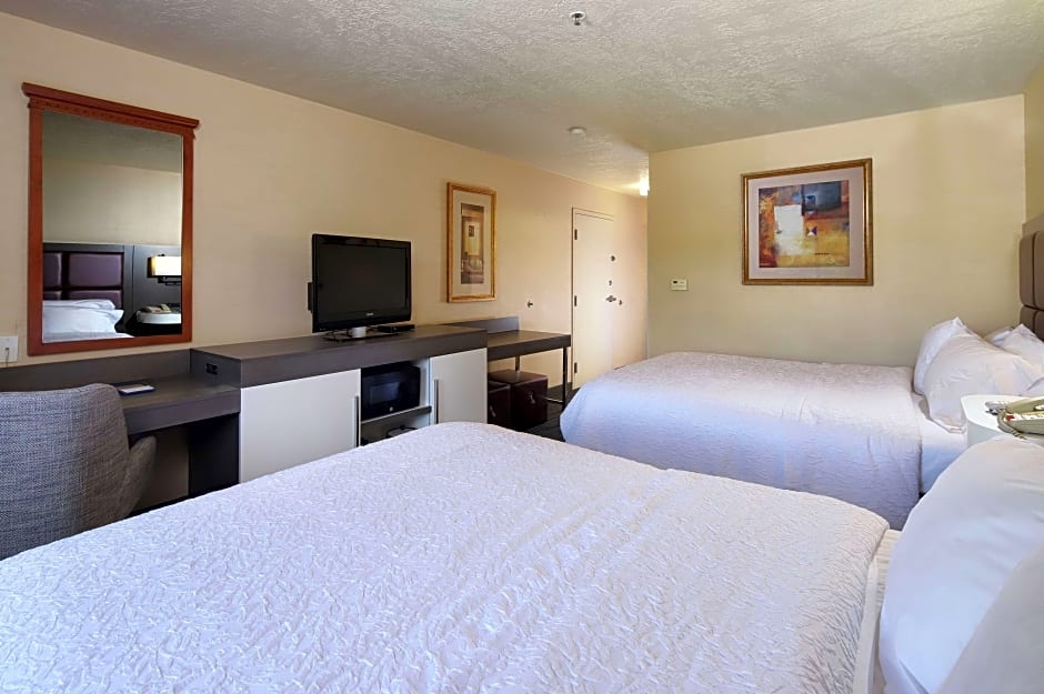 Any corresponding photo may not reflect the specific accessible room type or room feature. This hearing accessible, nonsmoking room features two queen sized bed(s). The room also has a visual alarm and notification devices for the doorbell or door knock and incoming phone calls. The room features our luxurious Clean and Fresh Hampton Bed, comfortable soft seating, microwave, refrigerator, a HDTV, and easy to operate alarm clock/radio. In the bath you will enjoy a WaterPik shower head and curved shower rod. The free high speed internet access will help you stay connected while on the road. If you prefer not to work at the desk, you can use the convenient lapdesk instead. You'll also enjoy the convenience of having a coffee maker with tea service and iron/ironing board in your room.