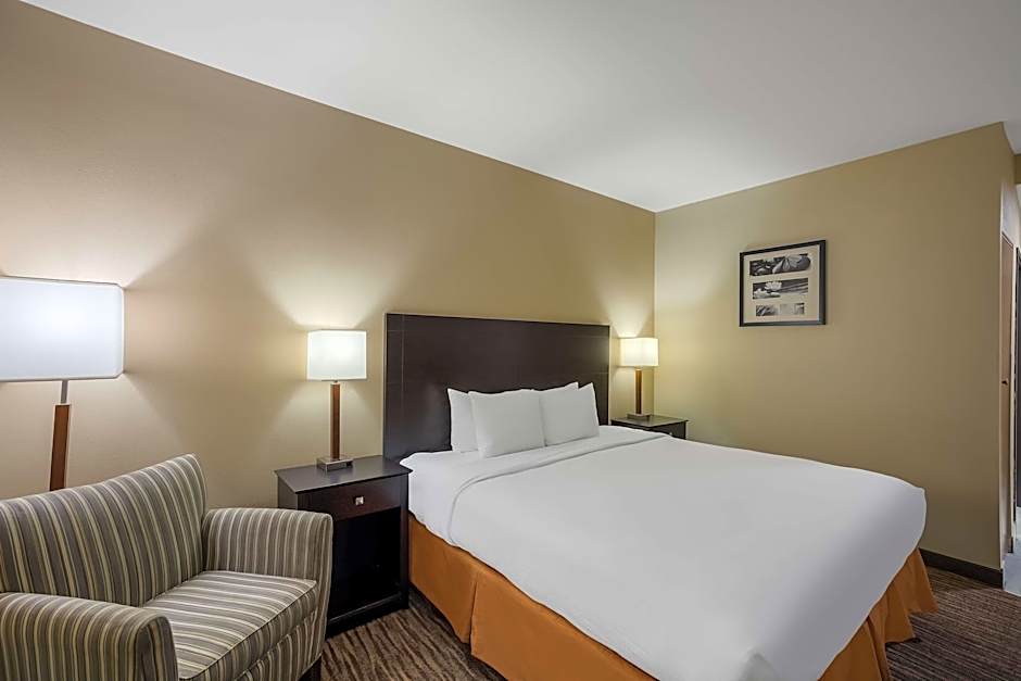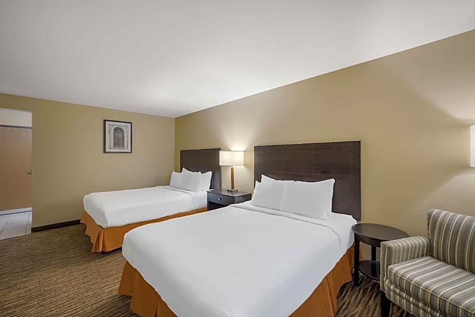 The Best Western Gold Poppy Inn offers a Queen Room with Two Queen Beds, accommodating 4 adults and 1 child, with a room size of 301 sqft. Smoking is not allowed in this room. The hotel also has a King Room - Non-Smoking, which accommodates 2 adults and 1 child, with a room size of 301 sqft. Additionally, there is a King Room with Roll-In Shower - Disability Access, also non-smoking, accommodating 2 adults and 1 child. All rooms have a bed size of either Queen or King.