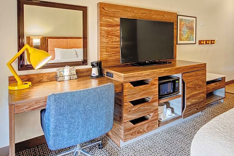 32-inch HDTV, whirlpool, free WiFi, sofa bed, coffeemaker, microwave, refrigerator Unwind in this convenient studio suite with one king clean and fresh Hampton bed® and a handy sofa bed. Relax and watch the 32-inch HDTV or stay on top of business at the desk. Keep up-to-date with free WiFi. Convenient amenities include a microwave, refrigerator, and coffeemaker. The bathroom includes a shower with a curved rod, that allows for more space and light, and a relaxing whirlpool tub.