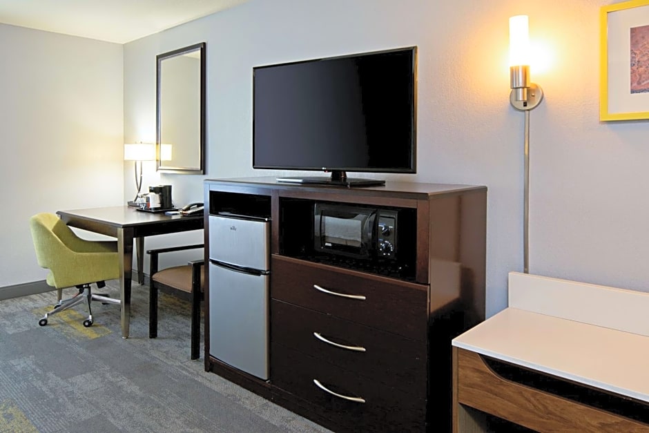 This mobility accessible, non-smoking room features one king-sized bed, and an accessible bath tub. The room features comfortable soft seating, a HDTV, and easy to operate alarm clock/radio. The free WiFi access will help you stay connected while on the road. If you prefer not to work at the desk, you can use the convenient lap desk instead. You'll also enjoy the convenience of having a coffeemaker with tea service and iron/ironing board in your room. Any corresponding photo may not reflect the specific accessible room type or room feature.