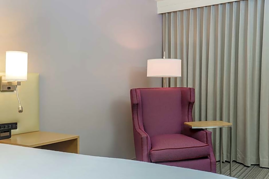 This mobility accessible standard room features one king-sized bed and an accessible tub. This room offers the latest in technology and ergonomic comfort to our guests. Grab bar in tub with attached accessible seating, lowered vanity in bathroom, and lowered shelf in closet. And the pursuit of the perfect night's stay continues with an evolution of innovative new amenities including the bed, chair, television and crisp white duvet. The ergonomic Mirra chair by Herman Miller is good for your back and better for work. Enjoy an in-room movie or your favorite television show on our 36-inch HDTV. There's also a microwave, refrigerator and coffee/teamaker to help you feel at home. And for conducting business, our rooms ensure your productivity thanks to the spacious work desk, two telephones with dataport and voicemail and complimentary WiFi access. Any corresponding photo may not reflect the specific accessible room type or room feature.