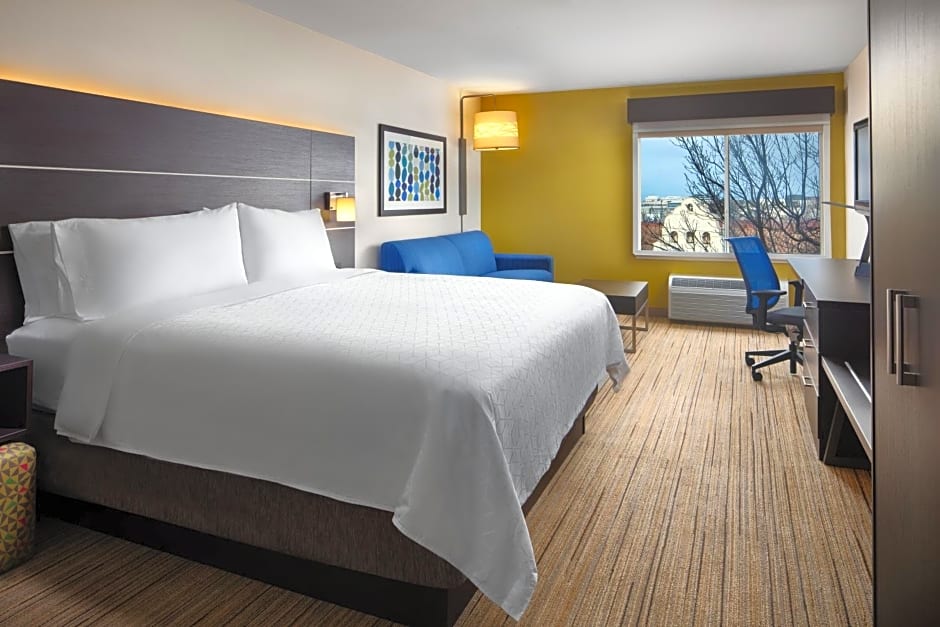The Holiday Inn Express Hotel & Suites Belmont offers various types of rooms. These include the Executive King Room, Alcove King Suite, King Suite, Queen Room with Two Queen Beds, Standard Room, and King Room. All rooms are non-smoking and have different sizes, accommodating different numbers of adults and children. Bed sizes range from Queen to King, with some rooms also having a sofa bed.