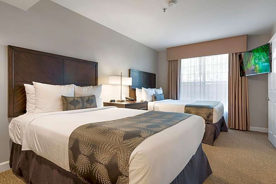 Room options span a variety of configurations, including a 1 Bedroom with Kitchen at 593 sqft and a 2 Bedroom option at up to 947 sqft. A kitchen-equipped 2 Bedroom, Kitchen suite features two king beds for plenty of comfort. For larger groups, some 2-bedroom configurations can accommodate up to 8 adults and 5 children, ensuring space to spread out during a shared stay.