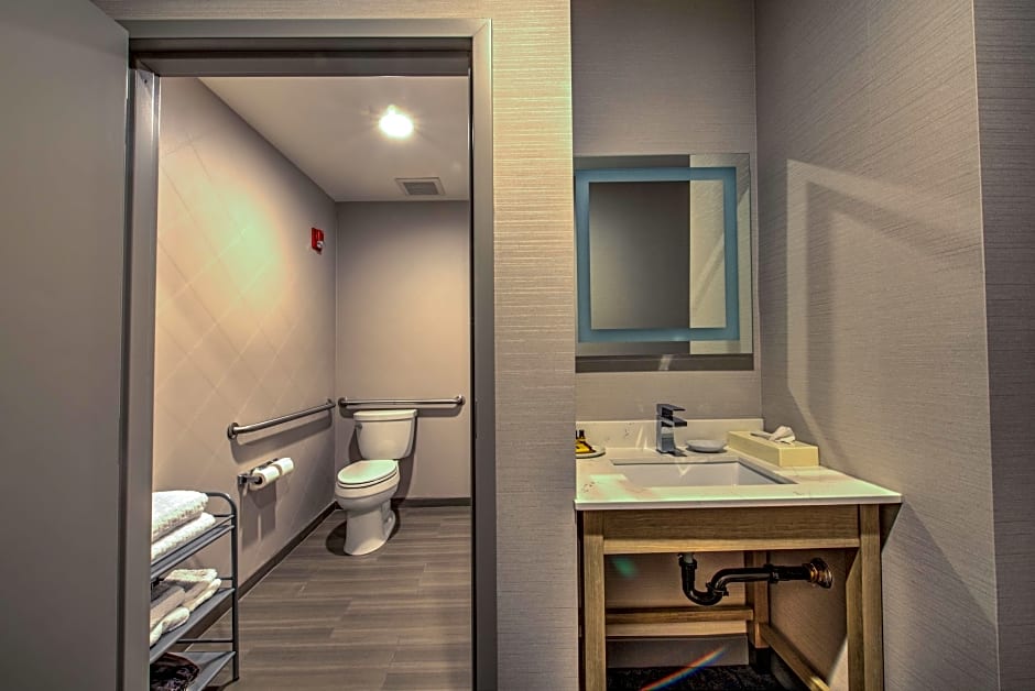 The hotel offers a variety of room types including quadruple, suite, and double rooms. All rooms are non-smoking. The quadruple rooms have either two queen beds or two queen beds with a roll-in shower for accessibility. The suites have varying bed configurations including a combination of queen beds and king beds, along with a sofa bed. The double rooms have either a king bed or a king bed with a mobility accessible tub and a sofa bed.