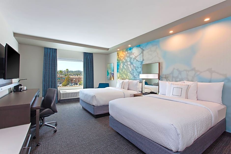 The Courtyard by Marriott San Diego El Cajon offers a variety of room options. Some of the rooms available include King Rooms with a Sofa Bed, Queen Rooms with Two Queen Beds (including a hearing accessible option), and Queen Rooms with Two Queen Beds and a Sofa Bed. All rooms are non-smoking and accommodate 2 adults and 1 child. The bed sizes range from King to Queen.