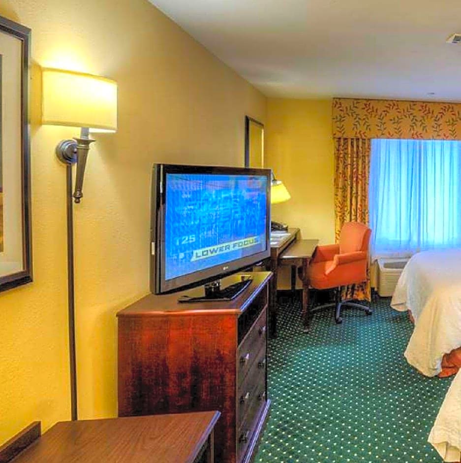 Sofa bed, free WiFi, 42-inch LCD HDTV, soft seating, desk, refrigerator, microwave Unwind in this spacious studio suite which features a king-sized clean and fresh Hampton bed®, a convenient sofa bed, comfortable soft seating, and a 42-inch LCD HDTV. Catch up on work at the large desk with ergonomic chair, or surf the web with free WiFi access. Refresh in the bathroom which has a WaterPik showerhead and curved shower rod that allows more light and space in the shower. This room also has a refrigerator and microwave.