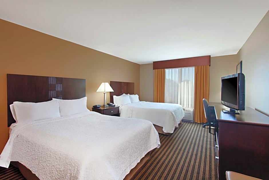 Free WiFi, 32-inch HDTV, soft seating, coffeemaker, desk, shower Unwind in this spacious guest room which features our clean and fresh Hampton king bed®, comfortable soft seating, and a 32-inch HDTV. Catch up on work at the large desk, or surf the web with free WiFi access. Refresh in the bathroom which has a large dressing area, WaterPik showerhead and curved shower rod that allows more light and space in the shower.