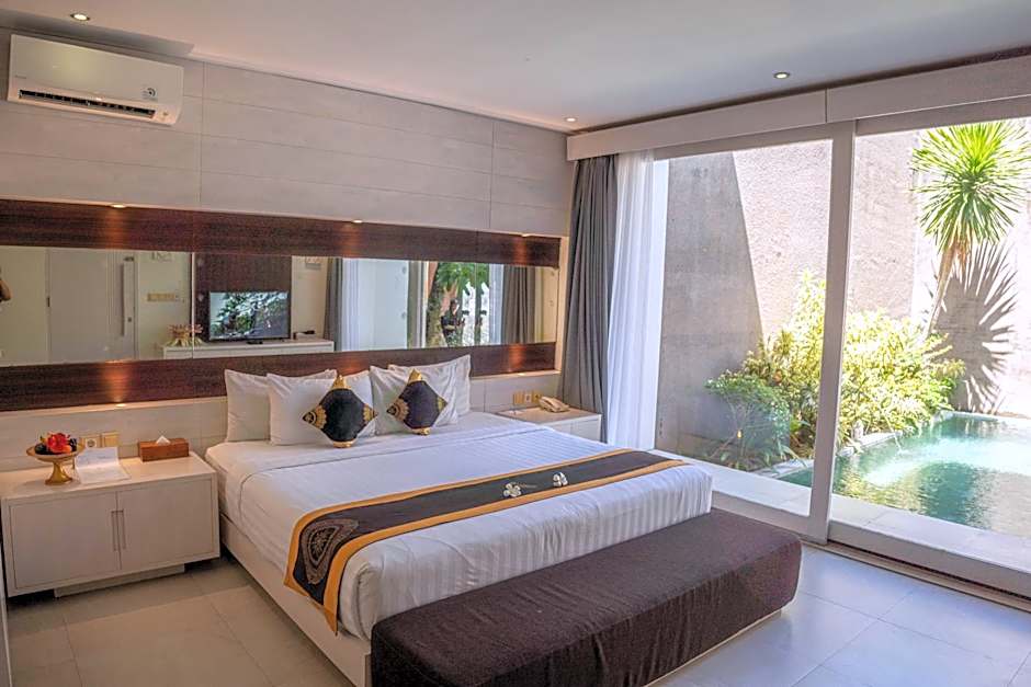This room includes either one King or two Queen beds, dual head shower with bath, and LCD TV in bedroom.