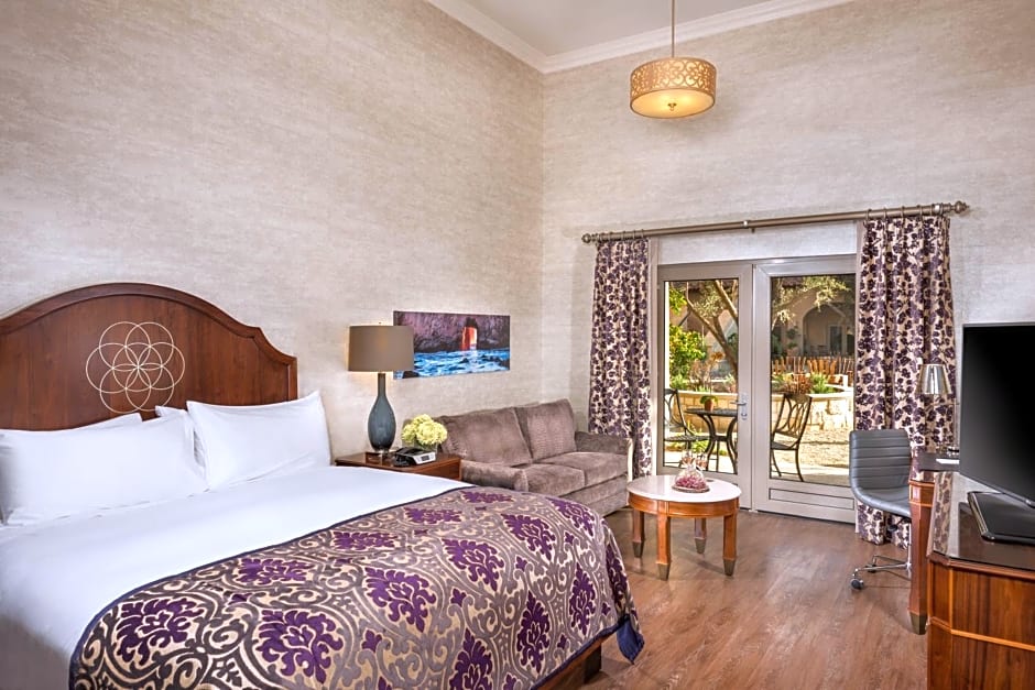 At Allegretto Vineyard Resort Paso Robles, guests can choose from several types of rooms. The One-Bedroom King Suite, Deluxe King with Sofabed, Deluxe King with Patio, and Deluxe Two Queen rooms all have a room size of 420 sqft and can accommodate 4 adults and 3 children. These rooms do not allow smoking. The Superior Queen Room is a double room with a larger size of 700 sqft and consists of 2 Queen size beds. It also accommodates 4 adults and 3 children and does not permit smoking.