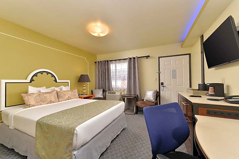 At this charming motel, you’ll find an array of amenities designed to cater to your every need. Enjoy the convenience of free WiFi to share your sunny California memories, take a break with delectable bites at the on-site restaurant, or catch some fresh air on your private balcony. And, if you’re driving in, you can take advantage of the free on-site parking to make your stay even smoother. Don’t forget to soak in relaxation in your cozy room fitted with air conditioning and a bathtub—pure bliss!