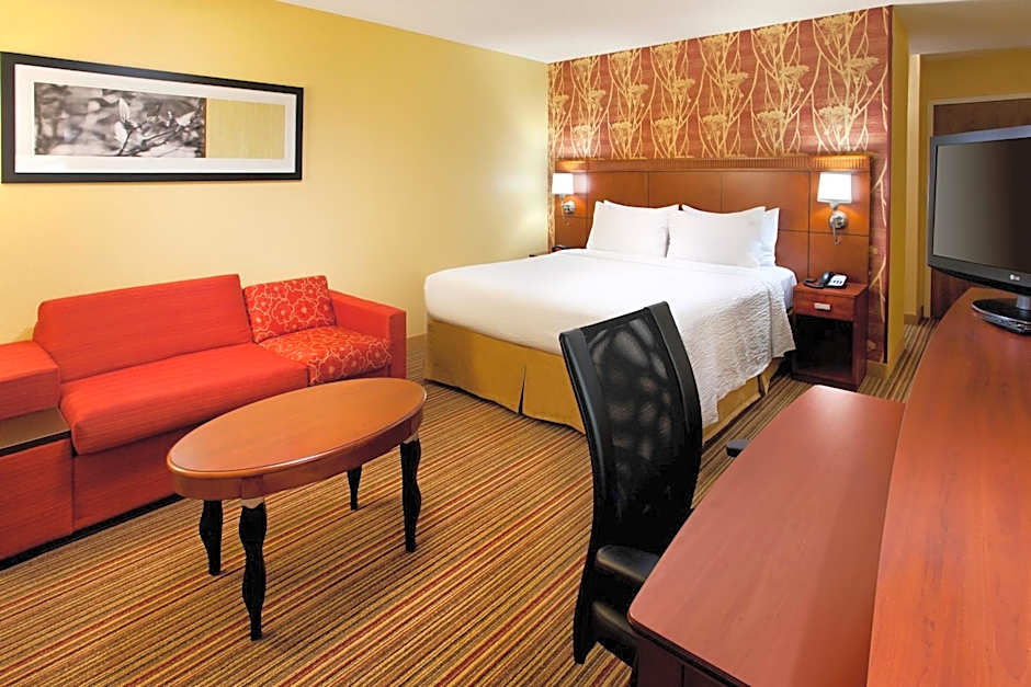 The Courtyard by Marriott San Diego Sorrento Valley offers a variety of room types. The King Room and King Room with Sofa Bed have a king size bed and can accommodate up to 3 adults and 2 children. The Suite has a king size bed and a sofa bed, with a larger room size of 506 sqft. The Queen Room with Two Queen Beds is slightly larger at 366 sqft and can accommodate up to 4 adults and 3 children. All rooms are non-smoking.