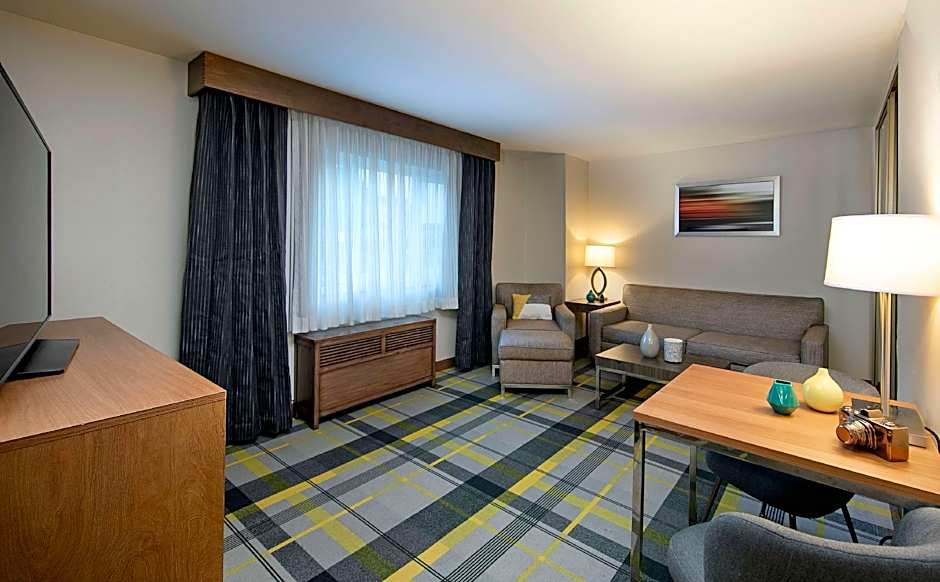 For dining options, guests can visit the on-site restaurant, Schoolyard. This family-friendly restaurant offers modern ambiance and serves American cuisine.