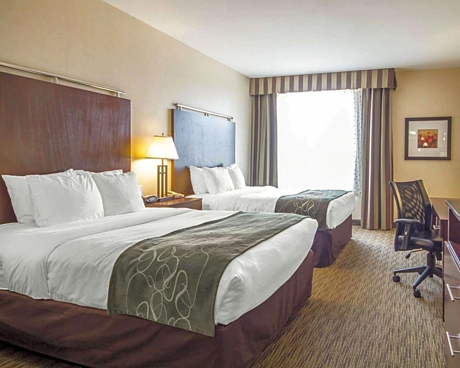 The Comfort Suites hotel offers a variety of room types including suites and double rooms. The suites range in size from 431 sqft to 463 sqft and can accommodate 4 adults and 3 children. The rooms offer a choice of king or queen size beds, with some rooms also featuring a sofa bed. Smoking is not allowed in any of the rooms.