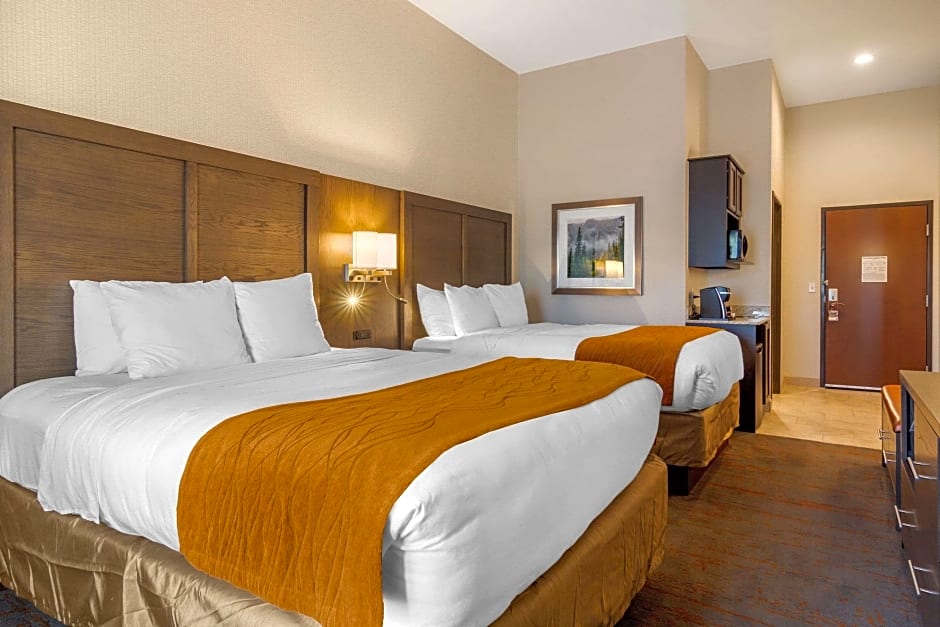 The Comfort Inn & Suites Brighton Denver NE Medical Center offers a variety of room options. There are Queen Rooms with Two Queen Beds, King Suites, and Suites with Two Queen Beds available. Smoking is not allowed in any of the rooms. The beds range from Queen size to King size, and the rooms can accommodate between 2 and 6 adults, with additional accommodation for children available in most rooms.