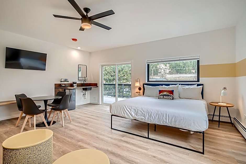 Nestled along Colorado Boulevard, this Idaho Springs motel offers a mountain-view setting with easy access to town. A private entrance opens to a balcony that frames the surrounding peaks, creating a laid-back, characterful launchpad for a Colorado getaway. For travelers with four-legged friends, pet-friendly options are available with extra charges.