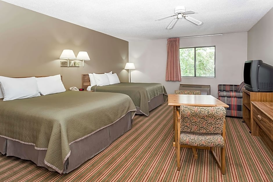 The hotel offers Studio Suites and Queen Rooms. The Studio Suites have two Queen beds and are available in smoking and non-smoking options. They have a room size of 280 sqft and can accommodate up to 6 adults and 4 children. The Queen Rooms have either one Queen bed or two Queen beds and are also available in smoking and non-smoking options. They have a room size of 205 sqft and can accommodate up to 4 adults and 3 children. The hotel also offers King Rooms, which have one King bed, and are available in smoking and non-smoking options. They have a room size of 205 sqft and can accommodate up to 2 adults and 1 child.