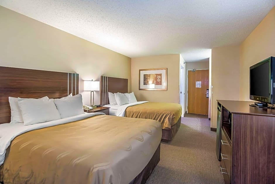 The Quality Inn & Suites West offers a variety of room options. The King Room - Accessible/Non-Smoking is equipped with a King size bed and can accommodate 2 adults and 1 child. The Standard King Room - Non-Smoking features a King size bed and a room size of 269 sqft, accommodating 2 adults and 1 child. The Standard Queen Room with Two Queen Beds - Non-Smoking comes with 2 Queen size beds, accommodating 4 adults and 3 children, and a room size of 291 sqft. Smoking is not allowed in any of these rooms.