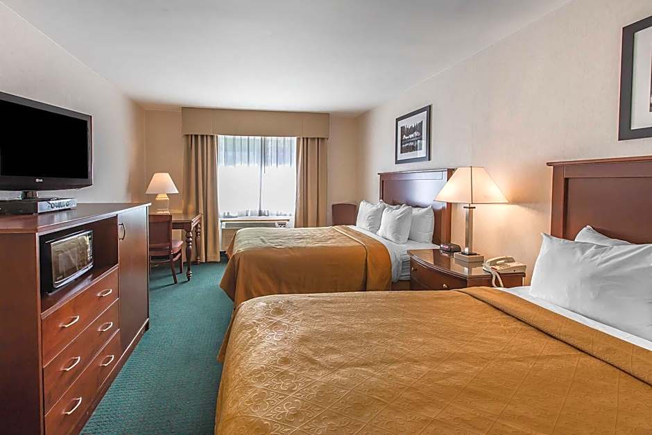 The hotel offers a variety of room types including King Rooms, Queen Rooms with Two Queen Beds, King Suites, and rooms with accessibility features. All rooms are non-smoking. The King Rooms can accommodate 2 adults and 1 child, while the Queen Rooms with Two Queen Beds can accommodate 4 adults and 3 children. The King Suites can accommodate 4 adults and 3 children. The room size for all rooms is 280 sqft, except for the King Suite which is 560 sqft. The King Room with Whirlpool and the King Suite both have a King size bed, while the other rooms have either 1 or 2 Queen size beds.