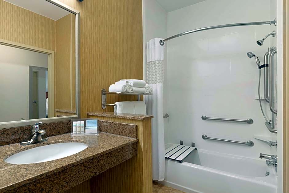 Any corresponding photo may not reflect the specific accessible room type or room feature. This mobility accessible, nonsmoking room features one king sized bed , and an accessible bath tub. The room features comfortable soft seating, microwave, refrigerator, a HDTV, and easy to operate alarm clock/radio. The free high speed internet access will help you stay connected while on the road. If you prefer not to work at the desk, you can use the convenient lapdesk instead. You'll also enjoy the convenience of having a coffee maker with tea service and iron/ironing board in your room.