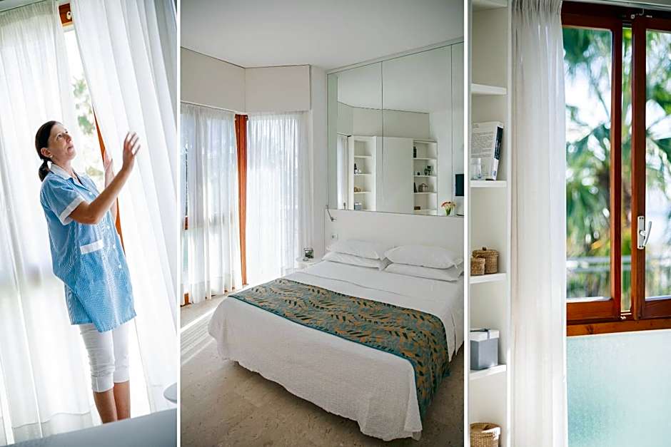 This air-conditioned room features satellite TV and a balcony offering partial sea views.