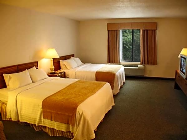 Also on offer are a Non-smoking Double Room with a single double bed for 2 adults and 1 child, and a Non-smoking Room - 2 Queen layout at 355 square feet with two Queen beds for up to 4 adults and 3 children. Smoking-allowed variants include Double Room, Smoking Allowed; King Room, Smoking Allowed (351 square feet, king bed, for 2 adults and 1 child); and Room - 2 Queen, Smoking Allowed (351 square feet) with two Queen beds for up to 2 adults and 1 child.