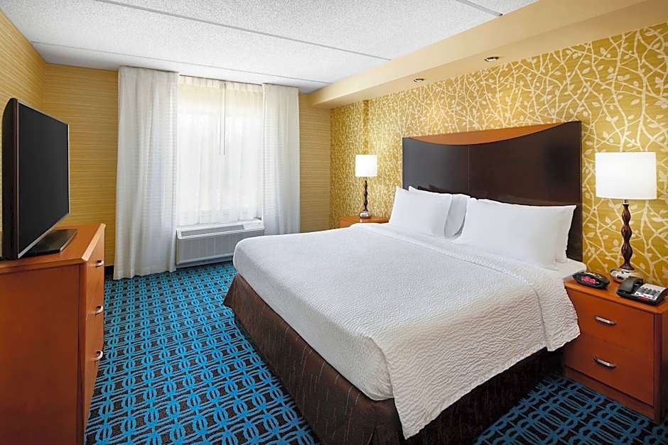 At the Fairfield Inn and Suites by Marriott Plainville, there are King Rooms with adapted tubs for guests with mobility and hearing accessibility needs. There are also Queen Rooms with two Queen beds, King Rooms, and King Studios with Sofa Beds available. Smoking is not allowed in any of the rooms. The rooms accommodate between 2 to 4 adults and 1 to 3 children, and the bed size provided is a King size bed in each room type.