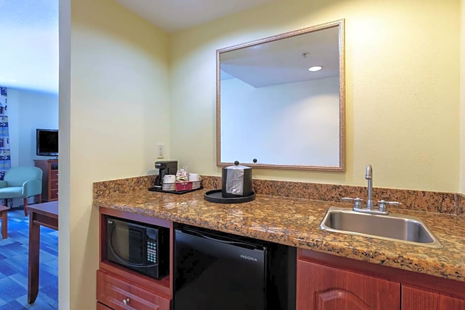 Sitting area, microwave, refrigerator, desk, HDTV, free WiFi Relax in this studio suite with a clean and fresh Hampton bed®. Spread out in the sitting area and watch movies on the HDTV. Surf the web with free WiFi. Catch up with work at the desk with ergonomic chair. Refresh your senses in the bathroom, complete with a shower and plush towels. Enjoy the convenience of having a wet bar in the suite, featuring a microwave, refrigerator and coffeemaker.