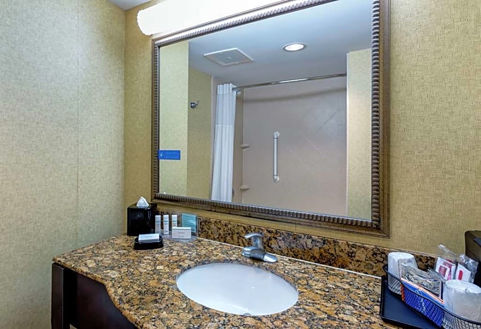 Any corresponding photo may not reflect the specific accessible room type or room feature. This mobility and hearing accessible, nonsmoking room features one king sized bed , and an accessible roll-in shower. The room also has a visual alarm and notification devices for the doorbell or door knock and incoming phone calls. The room features comfortable soft seating, microwave, refrigerator, a HDTV, and easy to operate alarm clock/radio. The free high speed internet access will help you stay connected while on the road. If you prefer not to work at the desk, you can use the convenient lapdesk instead. You'll also enjoy the convenience of having a coffee maker with tea service and iron/ironing board in your room.