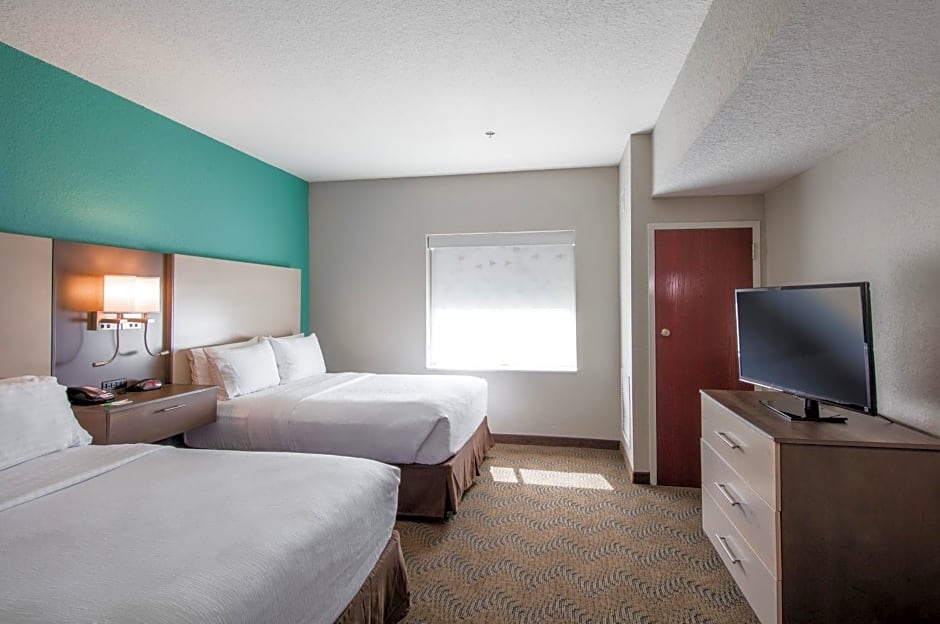 Find your home away from home in this amazing u shaped studio suite that includes free WiFi and a separate living area with a sleeper sofa you can watch movies on a 2 cable televisions microwave and refrigerator finish up business details at the well lit work desk with an ergonomic chair.