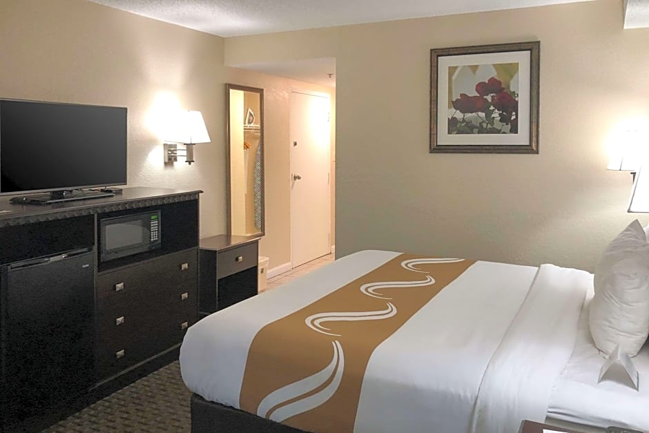 The well-equipped kitchen features a refrigerator, a dishwasher, kitchenware and a microwave. This wheelchair accessible studio has air conditioning, a seating area with a flat-screen TV and a roll-in shower. The unit has 2 beds.