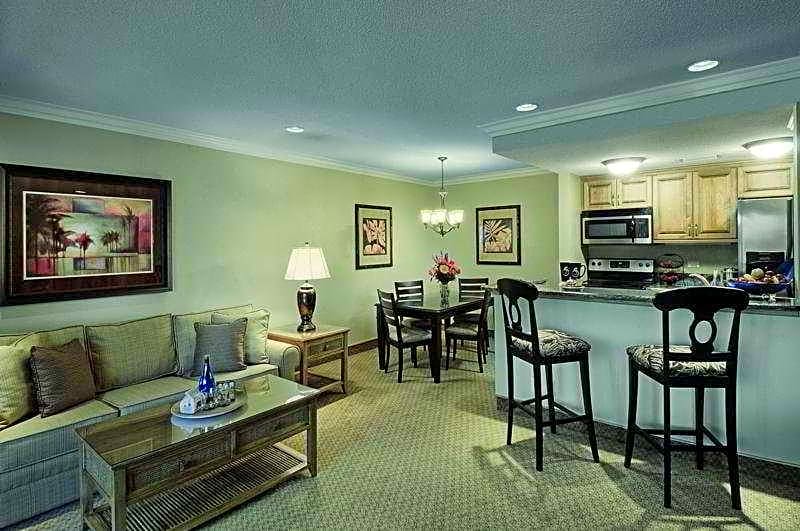The hotel offers a variety of room types including executive suites with either two queen beds or a king bed, one-bedroom suites, and a two-bedroom suite. All rooms have a no-smoking policy. The executive suites and one-bedroom suites accommodate up to 4 adults and 2 children, while the two-bedroom suite accommodates up to 8 adults and 2 children. Bed sizes range from queen to king, with some rooms also including sofa beds.