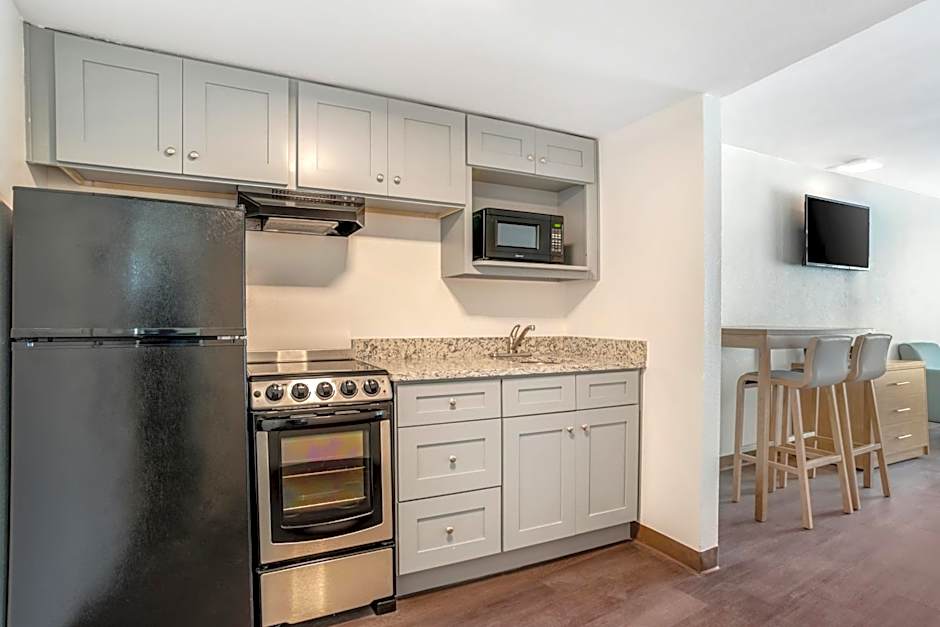 The suite offers air conditioning, a private entrance, as well as a private bathroom featuring a bath or a shower and a hairdryer. The kitchenette is fitted with a refrigerator, a microwave and a tea and coffee maker. This suite features a sofa and a flat-screen TV.